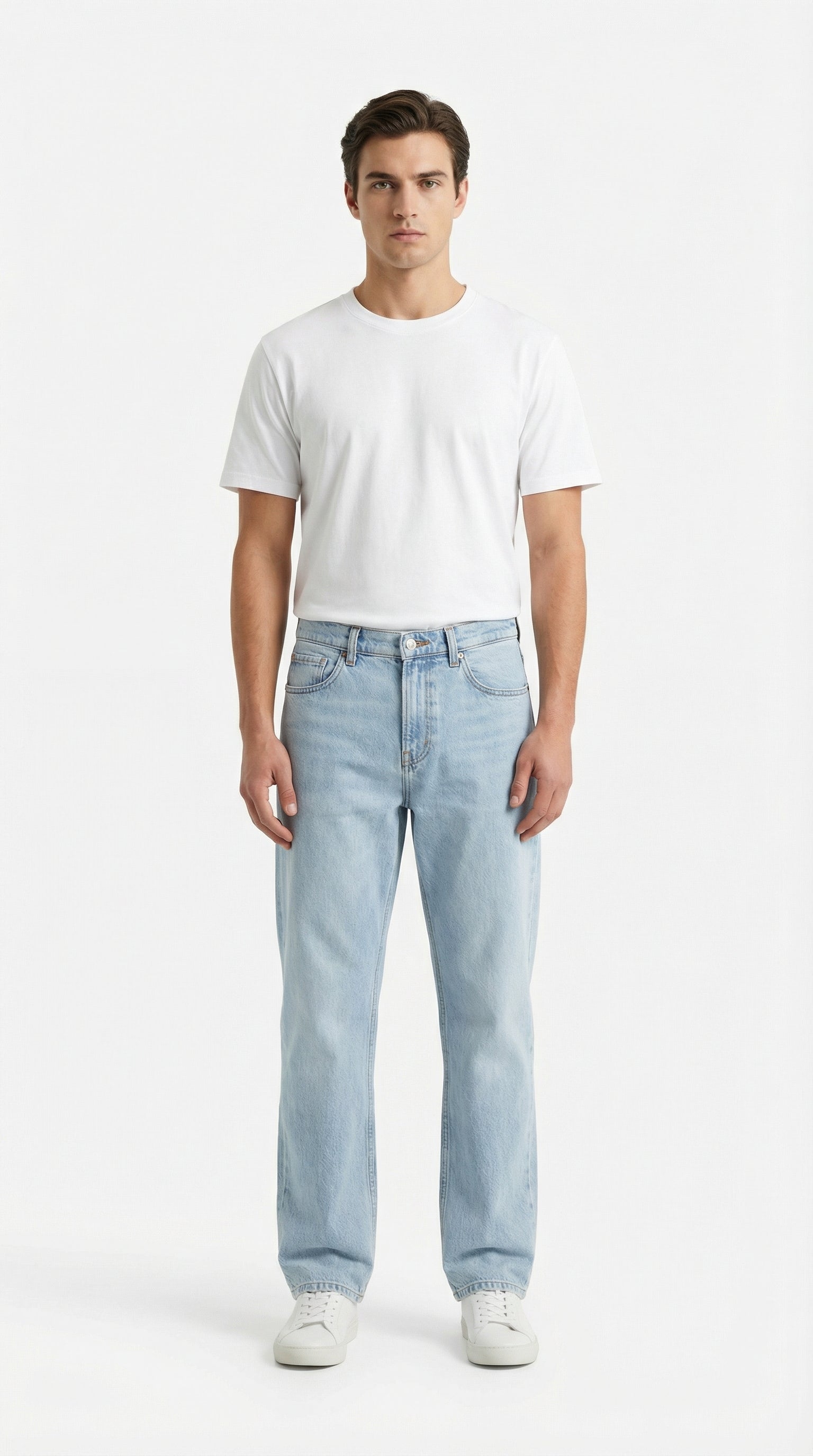 Elevate your everyday wardrobe with these Pull & Bear jeans, featuring a versatile light blue wash. Crafted for both comfort and style, these jeans offer a relaxed fit through the leg, making them an ideal choice for casual outings. The classic five-pocket design and durable denim construction ensure a timeless look that pairs effortlessly with any tee or hoodie.